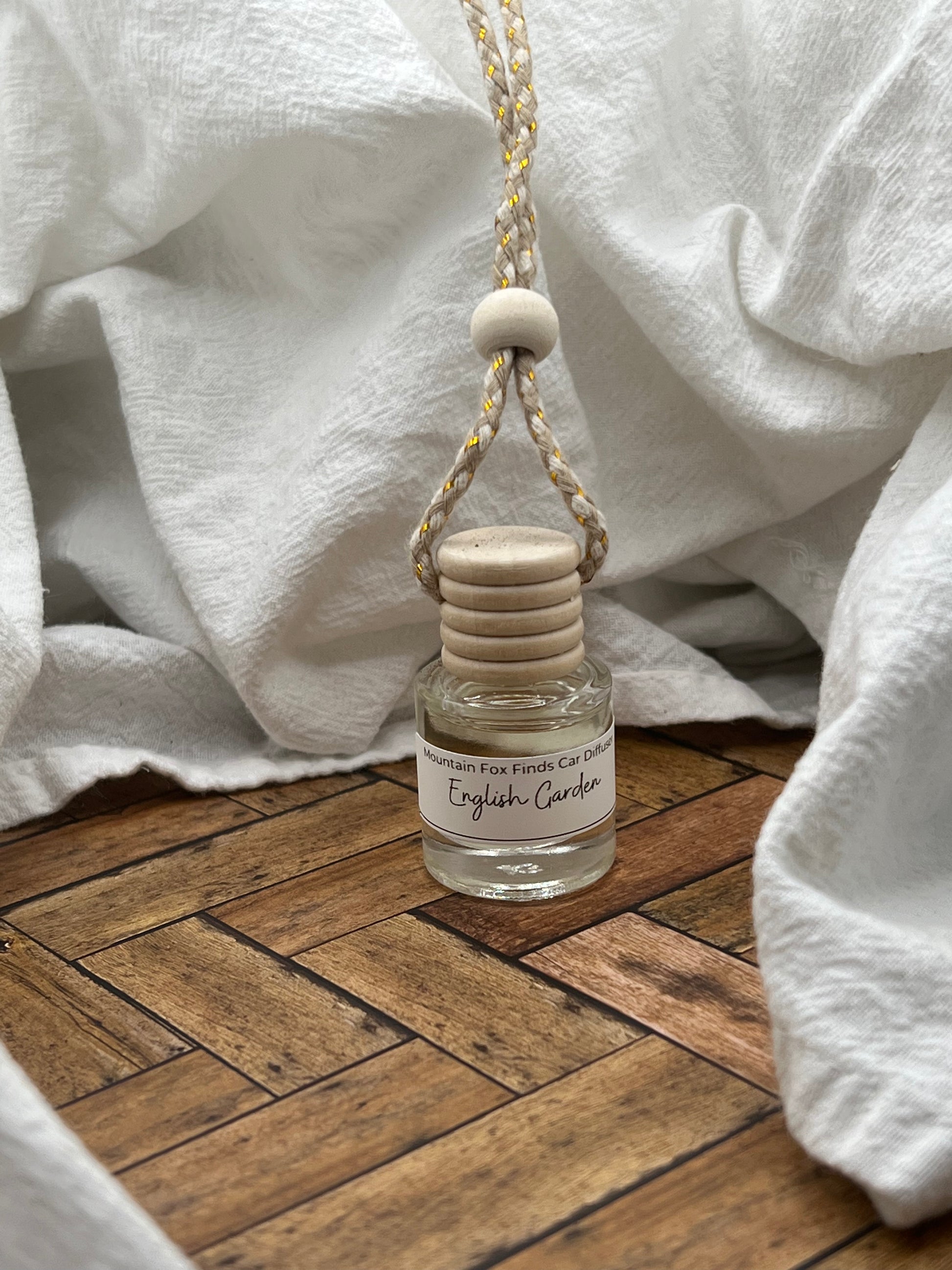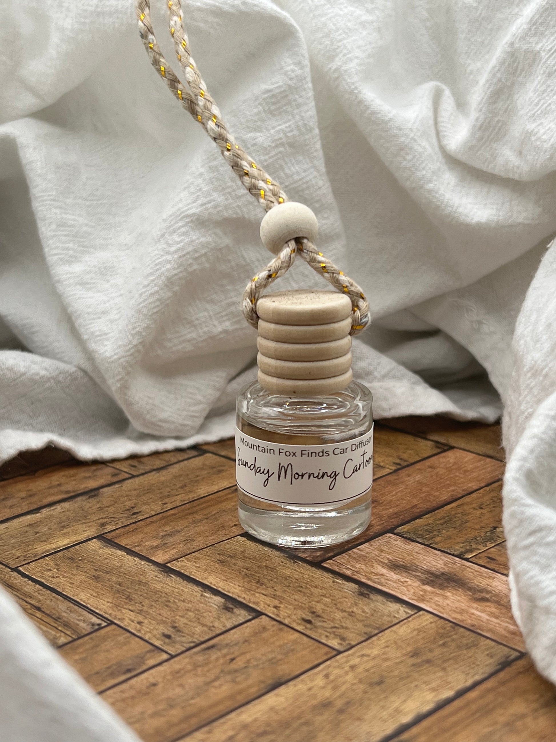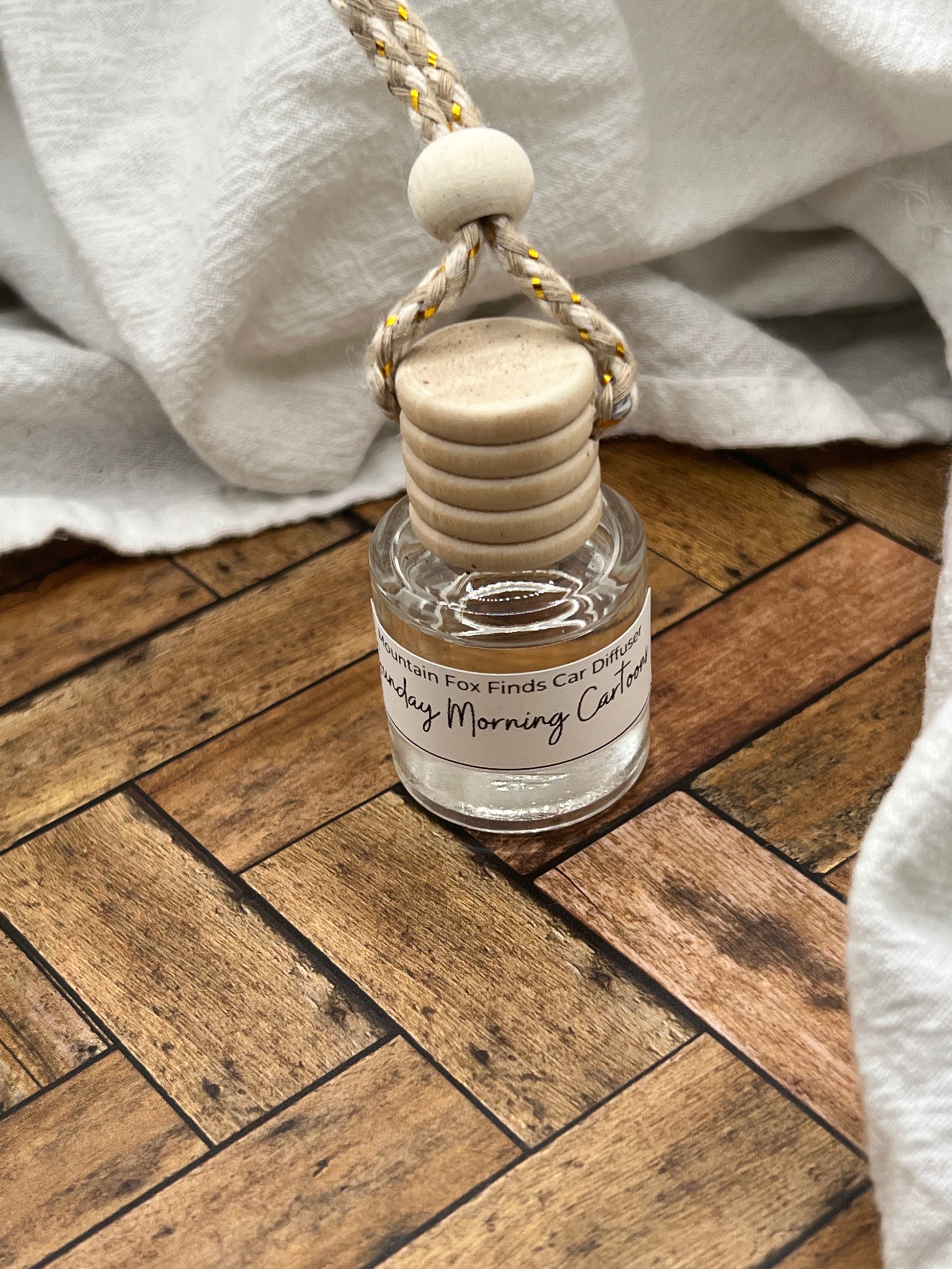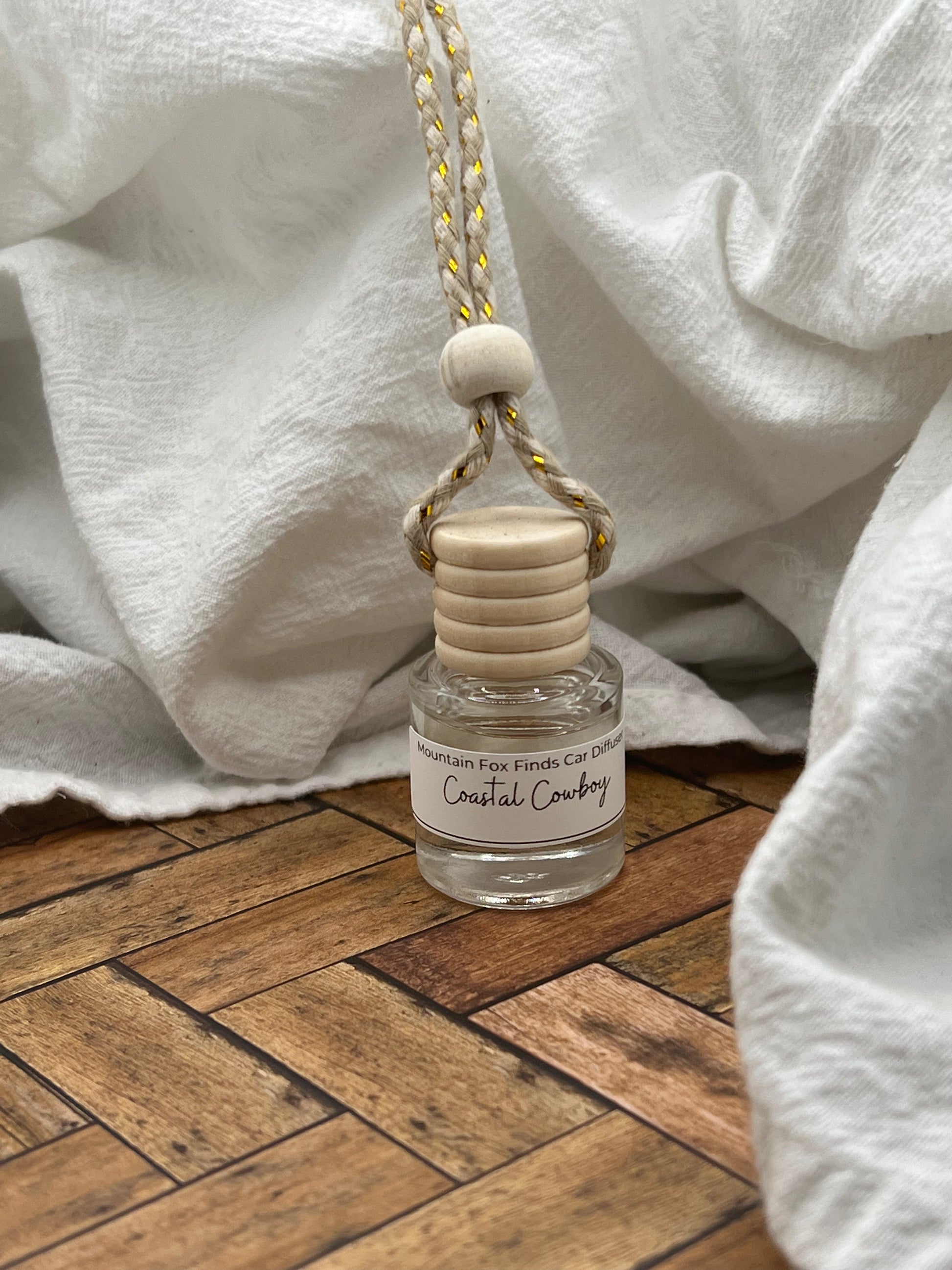 Instructions for Use: Unscrew and remove the wooden top. This will expose a plastic stopper- gently and slowly remove the stopper. Replace the wooden top and invert the base for no longer than 5 seconds. Replace plastic stopper to prevent leaking. This will allow the fragrance to absorb onto the string. We recommend tying a knot around your rearview mirror. This will minimize leaking and allow your car to smell great for all your upcoming roadtrips.