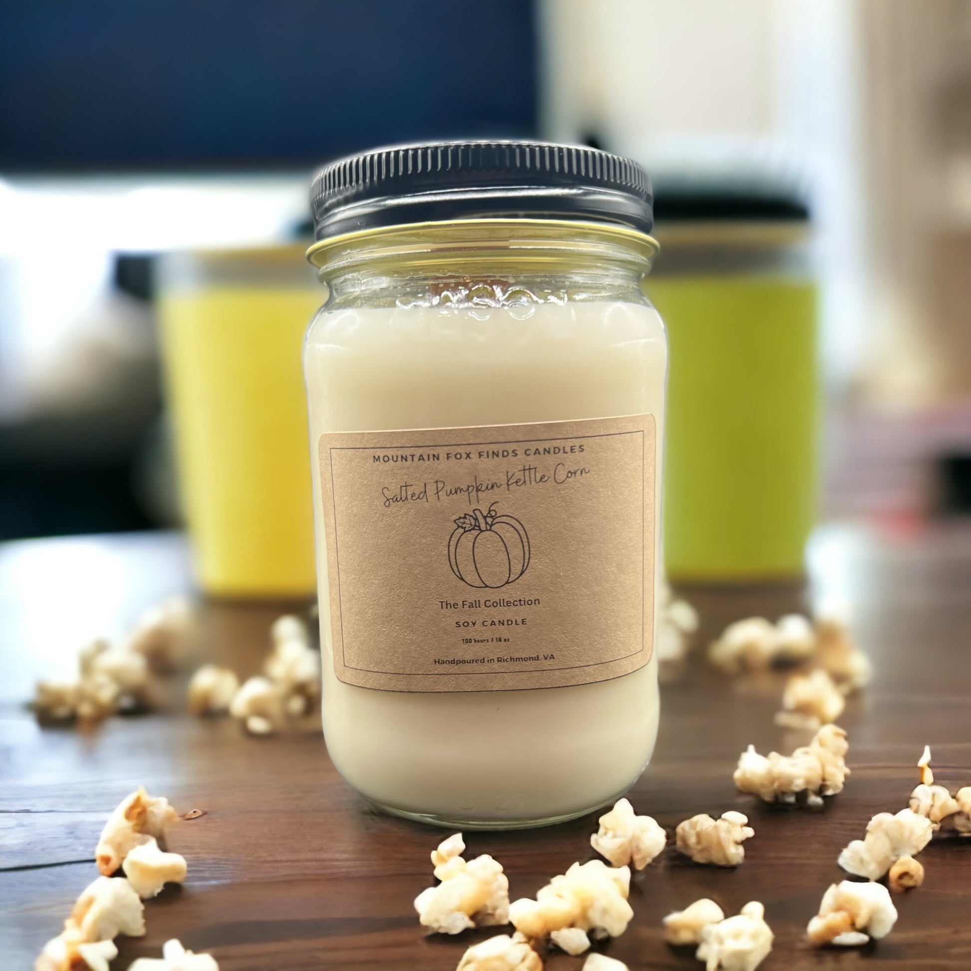 Indulge in the perfect autumn treat with our Salted Pumpkin Kettle Corn Candle. This enticing fragrance combines the comforting aroma of freshly popped kettle corn with the warmth of spiced pumpkin. As the candle burns, subtle notes of sea salt add a savory twist, creating a harmonious balance between sweet and salty. The result is a delightful and cozy scent that captures the essence of crisp fall days and delicious seasonal flavors. Light up this candle to fill your space with the inviting ambiance of salted pumpkin kettle corn, and embrace the spirit of autumn all year round.