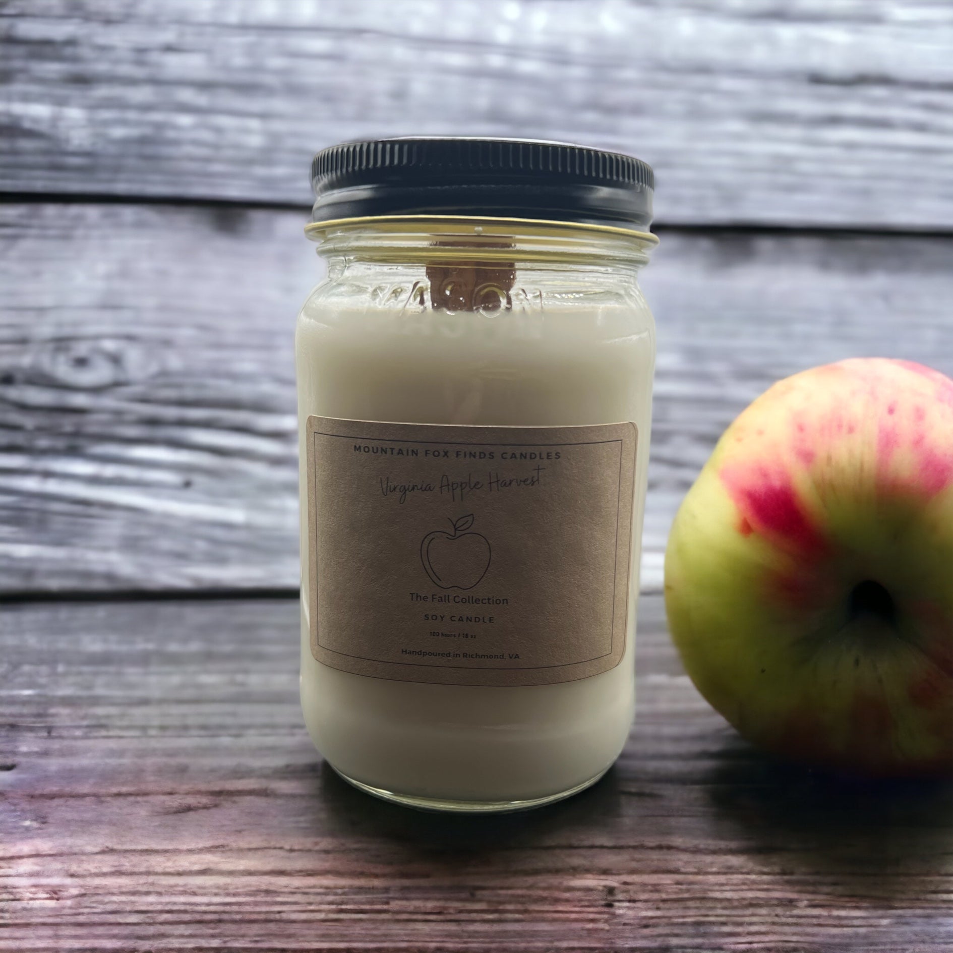 The Virginia Apple Harvest scented candle encapsulates the essence of freshly picked apples. With top notes of juicy apple and a hint of tartness, it captures the crisp and invigorating aroma of a ripe Macintosh apple. The scent is balanced by subtle floral undertones and a touch of sweetness, creating a well-rounded and inviting fragrance. The candle is presented in a classic glass container that enhances the warm glow of the flame, making it a perfect addition to any setting. Ideal for filling your space with the delightful scent of orchard-fresh apples.